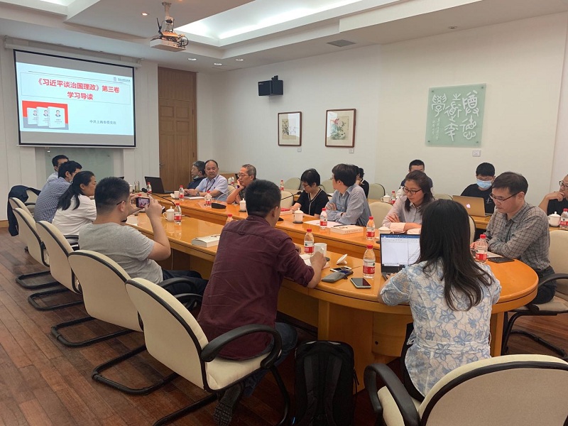 9月29日下午,政治所党支部与中马所党支部在113会议室联合召开《习近平谈治国理政》(第三卷)专题学习会,并邀请中共上海市委党校党性研究中心研究员袁峰作专题辅导报告。会议由政治所支部书记张树平主持。这是政治所党支部践行“四史”教育实践活动的重要内容之一。