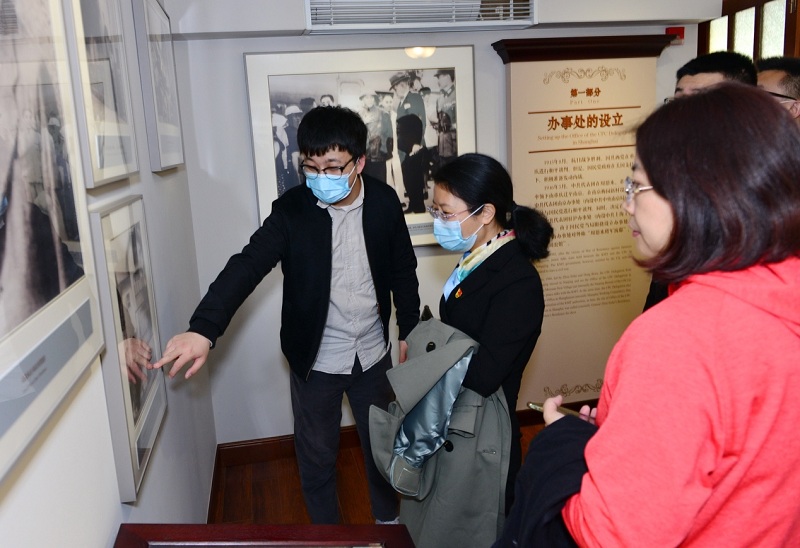 展厅分为四个部分。第一部分介绍了办事处的设立背景;第二部分介绍了内战爆发后办事处的活动;第三部分介绍了办事处积极开展统战工作情况;第四部分介绍了办事处被迫撤离上海的历史。在参观过程中,通过阅览大量珍贵的照片、剪报、信函、影像等资料,大家被以周恩来、董必武等老一辈无产阶级革命家的事迹与精神所感动。