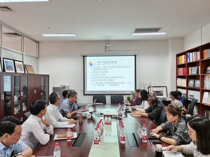 5月18日,为进一步推进党史学习教育活动,深入学习关于加强党内监督的党史专题内容,世界中国学研究所邀请我院机关纪委书记刘社建研究员为本所全体党员和科研人员做“中国共产党百年监察史”的专题讲座。会议由中国学所党支部书记、所长沈桂龙研究员主持。