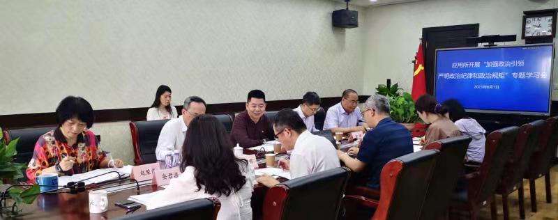 2021年6月1日,应用所党总支召开“加强政治引领、严明政治纪律和政治规矩”专题学习会。会议由应用所副所长李伟同志主持,所班子成员、所党总支成员及各支部书记参加会议。
