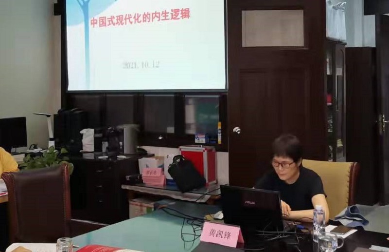 为深入学习贯彻习近平总书记“七一”重要讲话精神,扎实推进党史学习教育工作,2021年10月12日上午,中国马克思主义研究所党支部书记、所长黄凯锋研究员为全所职工讲授“中国式现代化的内生逻辑”专题党课。