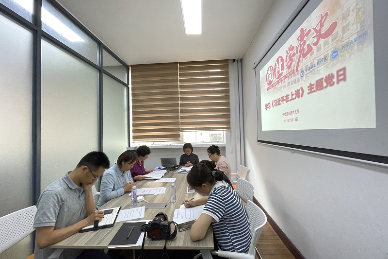10月15日,院党委宣传部支部开展学习《习近平在上海》主题党日活动。院党委副书记王玉梅以支部普通党员的身份出席。党支部书记汤蕴懿主持会议并为支部党员上专题党课。
