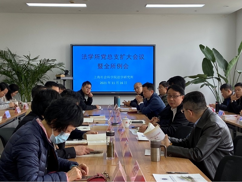 11月16日上午,法学研究所召开所党总支扩大会议暨全所例会,组织全所人员集中学习十九届六中全会精神。