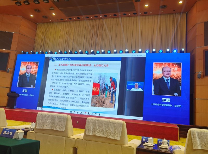 2022年9月28日,由中国社会科学院生态文明研究所和湖北省社会科学院主办的2022年长江高端智库对话论坛在湖北省武汉市举行。本次论坛的主题为“推动流域综合治理 统筹四化同步发展”。中共湖北省委常委、宣传部部长许正中、中国社会科学院党组成员、副院长高培勇出席论坛开幕式并致辞。 我院副院长、信息研究所所长王振研究员应邀出席本次论坛,并通过视频发表题为“碳达峰碳中和背景下生态产品价值实现新路径”的主题演讲。