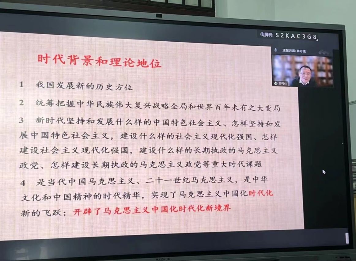 晏可佳指出,党的二十大是在全党全国各族人民迈上全面建设社会主义现代化国家新征程、向第二个百年奋斗目标进军的关键历史时期召开的一次非常重要的会议,二十大报告全面回顾总结了过去五年的工作和新时代十年的伟大变革,系统阐述了新征程党的奋斗目标和历史使命,对于明确我国发展新的历史方位、实现马克思主义中国化时代化新的飞跃、开辟马克思主义中国化时代化新境界具有重大意义,是新时代全面建设社会主义现代化国家的政治宣言和行动纲领。