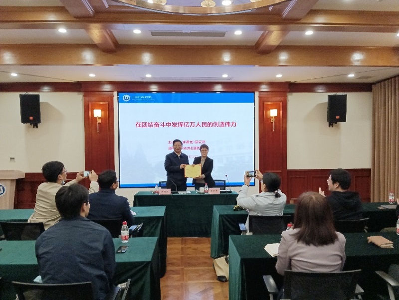 讲座结束后,我院马克思主义学院举行特聘教授聘任仪式,黄凯锋研究员向李君如教授颁发聘书。我院中马所全体党员、入党积极分子和学生共40余人参加活动。
