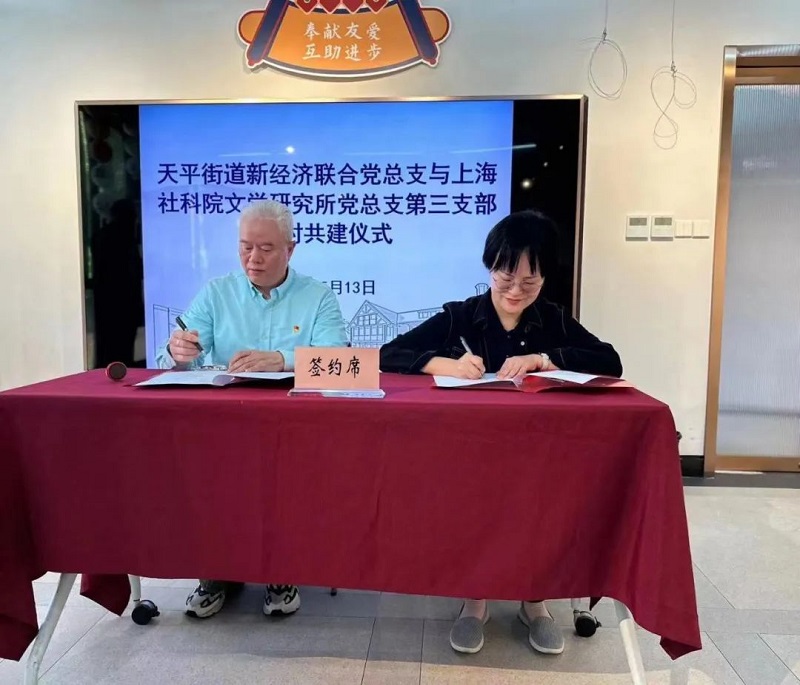 为推动主题教育学习成果的有效转化,进一步加强区域党建半岛电竞官方网站首页下载安卓 互学互补,在徐汇区天平街道党工委、党群服务中心的支持下,2023年5月13日,上海社会科学院文学研究所党总支第三支部与天平街道新经济联合党总支结对共建,在“66梧桐院”天平邻里汇举办了签约仪式。天平街道党工委副书记王慧、上海社会科学院文学研究所党总支副书记任洁、天平街道新经济联合党总支书记顾利兵、上海社会科学院文学研究所党总支第三支部书记陈凌云,以及支部党员代表等参加了此次活动。活动由天平街道新经济联合党总支副书记孙卫东主持。