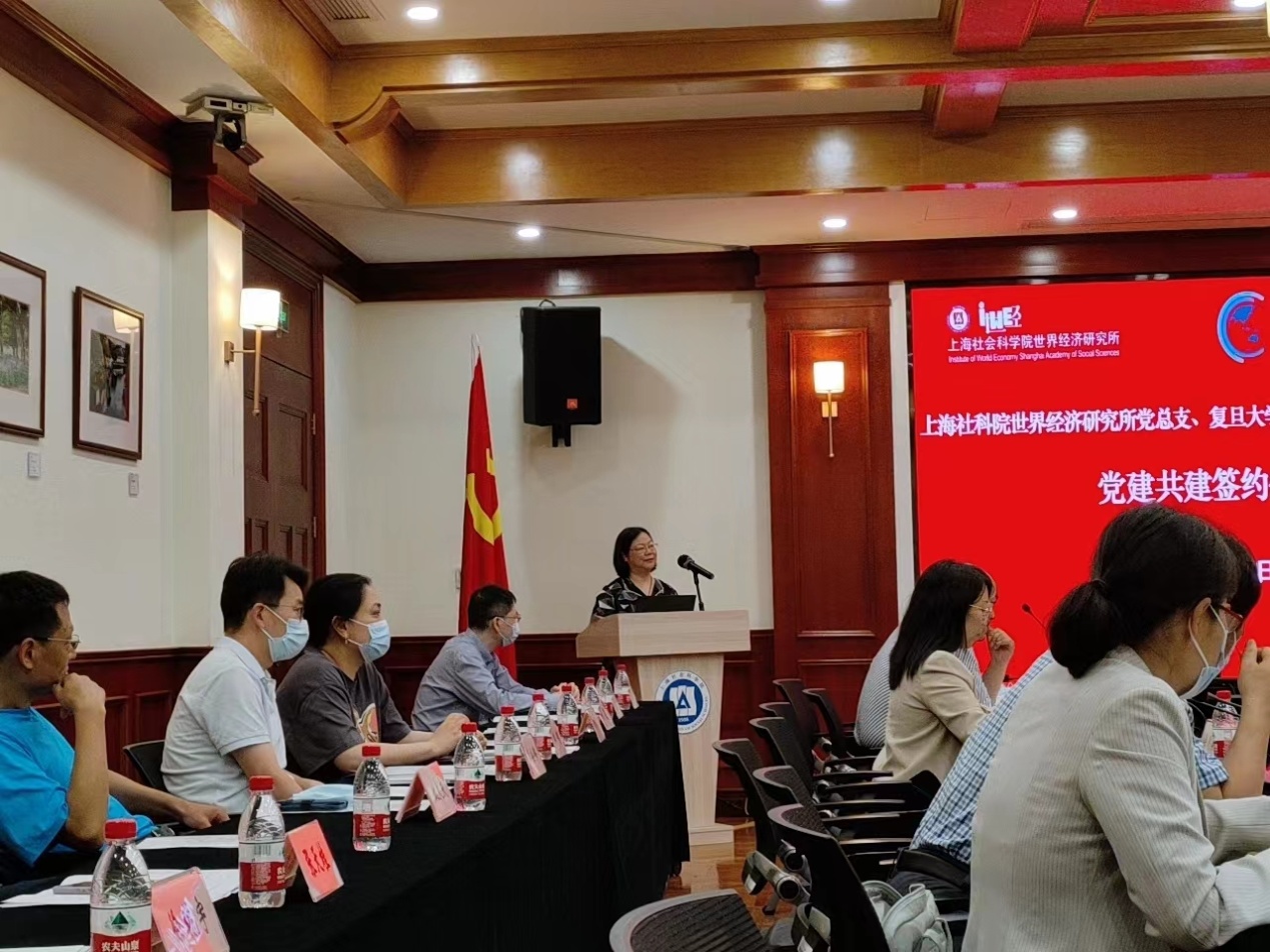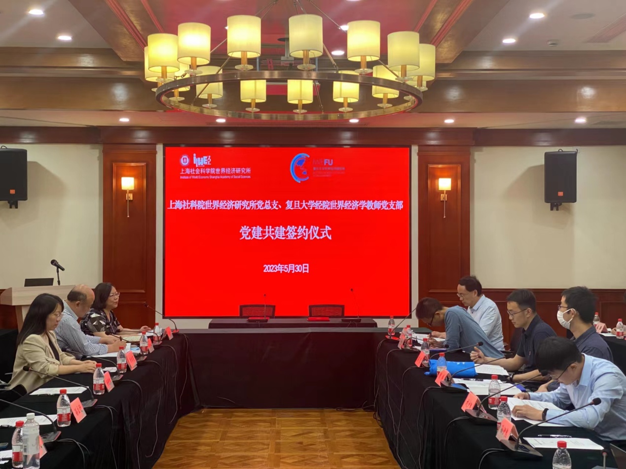 为深入开展学习贯彻习近平新时代中国特色社会主义思想主题教育,创新党建活动载体,2023年5月30日下午,世经所党总支与复旦大学经院世界经济学教师党支部联合开展主题教育活动暨党建共建签约仪式。世经所党总支书记、副所长(主持工作)赵蓓文研究员,复旦大学经院世界经济学教师党支部书记、世经所副所长沈国兵教授,世经所党总支全体党员,及复旦大学经院世界经济学教师党支部党员代表共约40人出席活动。会议由赵蓓文主持。
