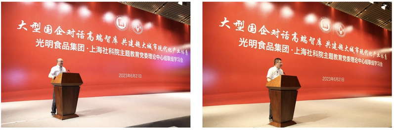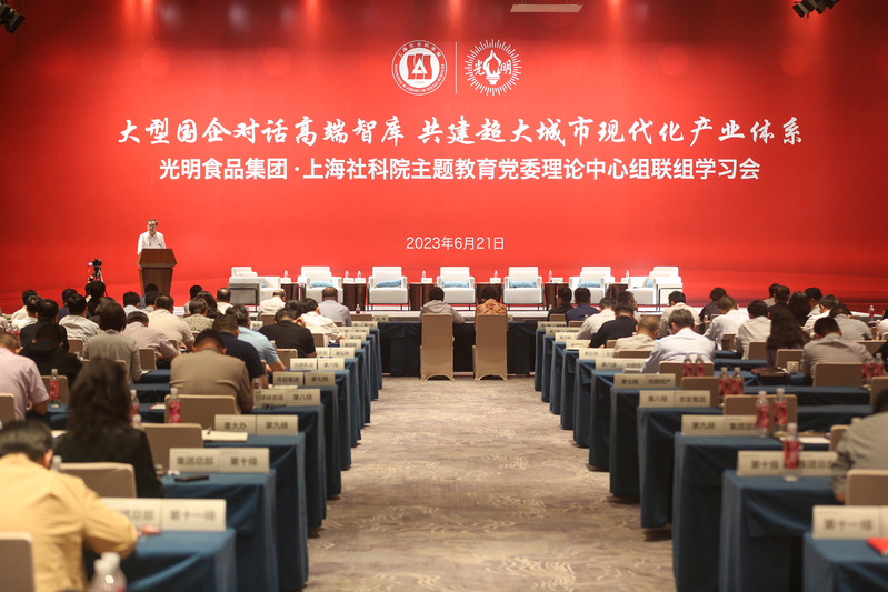 6月21日,我院党委与光明食品集团党委开展“大型国企对话高端智库,共建超大城市现代化产业体系”主题教育党委理论中心组联组学习。双方围绕学习贯彻习近平新时代中国特色社会主义思想,贯彻落实党的二十大精神,共同探讨现代化产业建设的新课题、探索超大城市高质量发展的新路径。市委第四巡回指导组组长杭春芳、市委第二十三巡回指导组副组长陆雅娟到会指导。上海社科院党委书记权衡,光明食品集团党委书记、董事长是明芳出席会议并代表双方党委签订了党建联建协议。院党委委员、副院长王振、干春晖等我院党委班子成员和光明食品集团党委班子成员出席会议。光明食品集团党委副书记、总裁徐子瑛主持会议。
