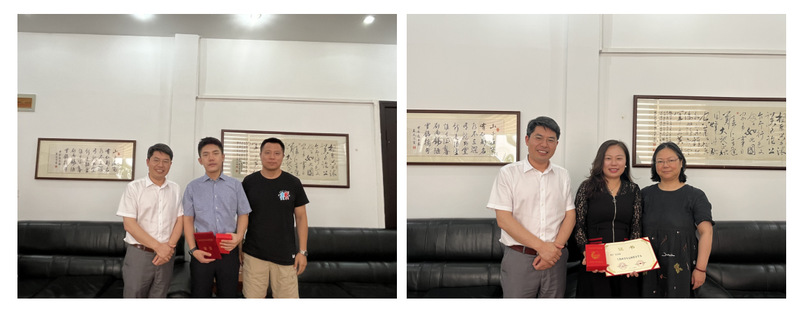 李开盛部长为两位优秀青年颁发证书和奖章,两位青年表达致谢和继续奋斗的决心。李开盛部长热情寄语青年,要把握时机、珍惜光阴、全面发展。赵蓓文研究员向两位青年表示祝贺,鼓励他们发挥榜样作用,继续开拓创新。