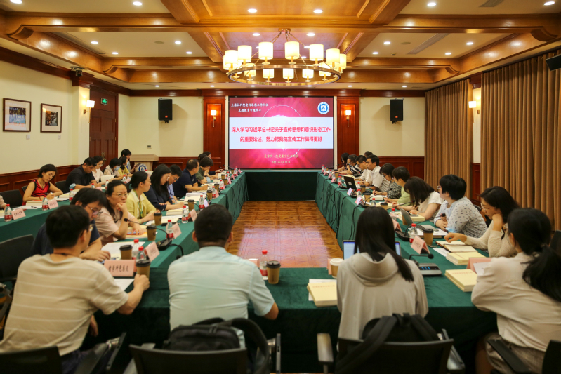 会上,全体与会人员集体学习了党的十八大以来习近平总书记关于宣传思想和意识形态工作的重要论述。院党委宣传部部长吴雪明从四个方面做了领学与导读。一是习近平总书记在广东、陕西、内蒙古、江苏考察时分别就以学铸魂、以学增智、以学正风和以学促干所作的重要论述;二是从深读细悟原著原文、整体把握精神要义、提高系统思维能力、学以致用以学促干等方面对《习近平论党的宣传思想工作》进行了导读;三是从意识形态工作的地位作用、使命任务、立场原则、重点难点、责任主体、能力要求等方面原汁原味地领学党的十八大以来习近平总书记关于意识形态工作的重要论述;四是从重大意义、主要特点、基本构成、主体内容等方面解读和阐释《中国共产党宣传工作条例》,认为该条例是做好新时代宣传思想工作的基本遵循。同时,结合我院开展主题教育、理论学习、宣传报道、成果传播、学术外宣等工作实际,就如何进一步做好宣传思想工作作了交流。
