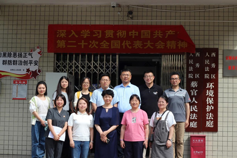 8月8日下午,调研组一行赴安顺市,在安顺市中级人民法院围绕生态赔付和司法体系建设等内容进行了座谈交流。调研组实地参观了西秀区蔡官人民法庭、西秀区环境保护法庭,深入了解了安顺市在践行生态法治思想、加强基层支部建设和司法体系建设等方面的经验做法。
