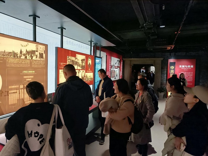 展厅内,党员们仔细观看一份份文字图片,深入了解中共四大第一次明确提出的无产阶级在民主革命中的领导权和工农联盟问题,以及第一次将党的基本组织由“组”改为“支部”等伟大成就,深刻体会早期共产党人的斗争智慧和革命精神,感受到中共四大在国民革命运动中、在中共党史中的重要作用。