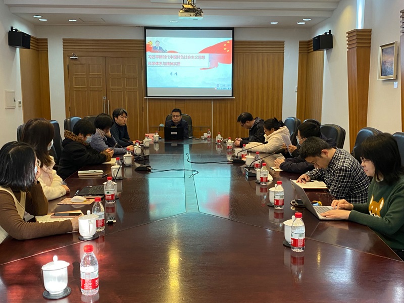 3月22日上午,政治与公共管理研究所党支部召开专题学习会议,邀请市委党校研究员袁峰作有关《习近平新时代中国特色社会主义思想科学体系与精神实质》专题讲座。会议由支部书记张树平主持。