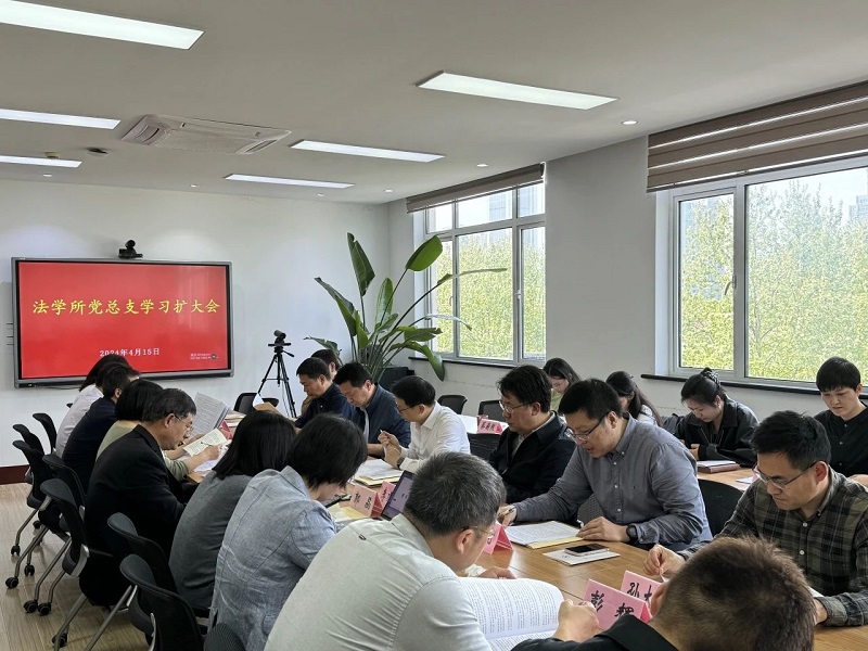 4月15日下午,法学所党总支召开学习扩大会议,学习传达中央党的建设工作领导小组、市委常委会扩大会议暨市委党的建设工作领导小组会议精神,并根据市委宣传部、院党委工作要求启动部署党纪学习教育工作。院党委副书记,法学所党总支书记、所长姚建龙主持会议并讲话。