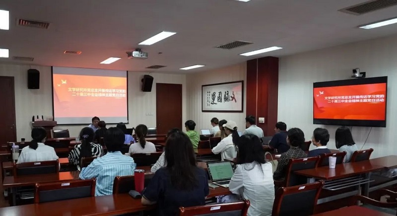 近日,文学研究所党总支开展主题党日活动,传达学习党的二十届三中全会精神。文学所党总支副书记任洁主持会议,全体党员参加会议。