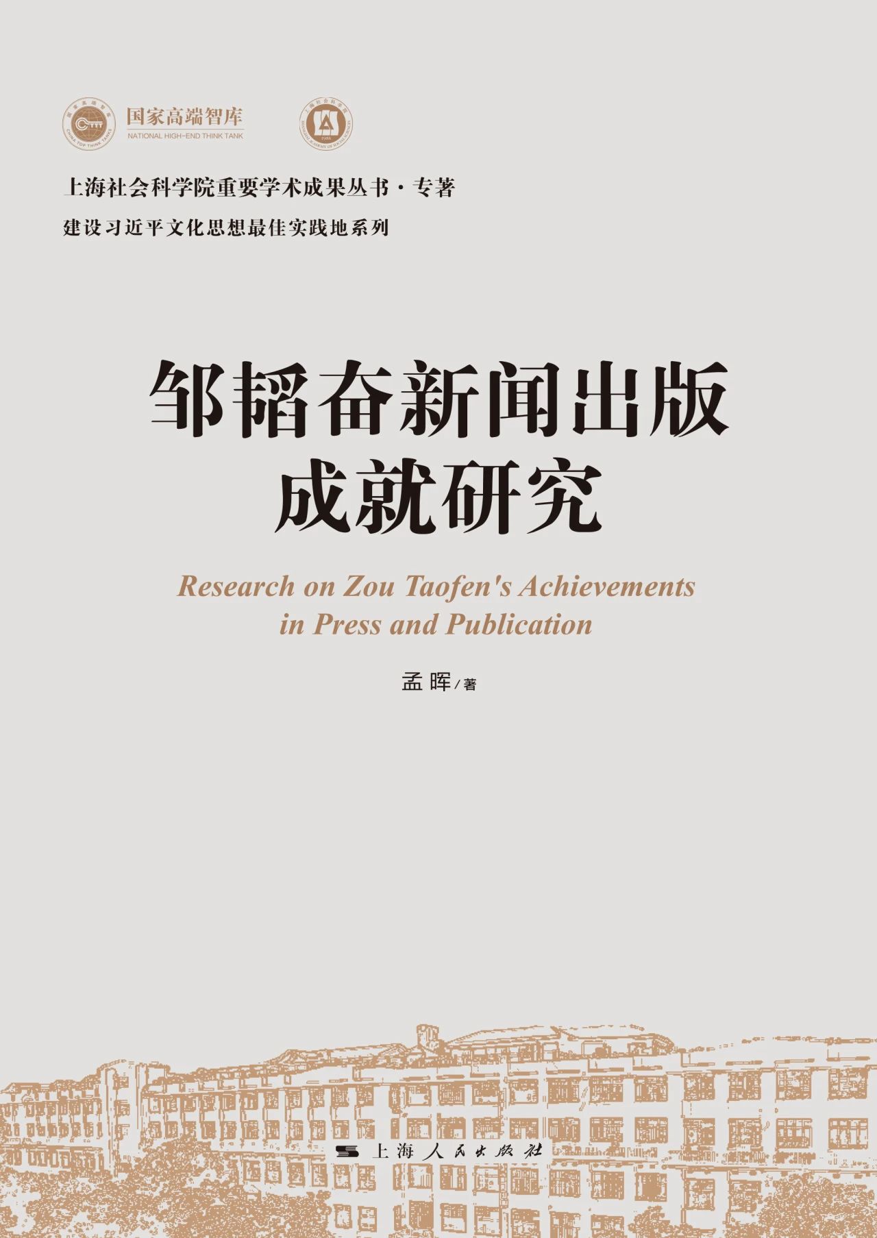 邹韬奋先生是著名的左翼新闻工作者和出版家的代表,也是与上海有着深厚渊源的文化名人,其主要求学和职业经历都是在上海展开的。邹韬奋历来是中国近现代文化史(尤其是新闻史)上的研究对象,学界已有不少研究成果,主要包括专著、论文及一些传记作品。不过有些成果缺乏宏观视野,以及系统的梳理、比较和理论总结,鉴于邹韬奋在近现代思想文化史上的重要历史地位和作用,仍有深入研究的必要。