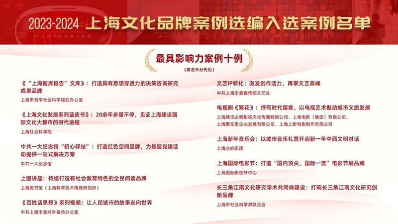 3月14日,2023-2024上海文化品牌案例选编入选案例名单正式公布,发布最具影响力、最佳创新发展、最受市民欢迎、最佳融合发展、最佳海外传播等5类50个上海文化品牌最佳案例。我院选送的《上海文化发展系列蓝皮书》入选最具影响力案例。