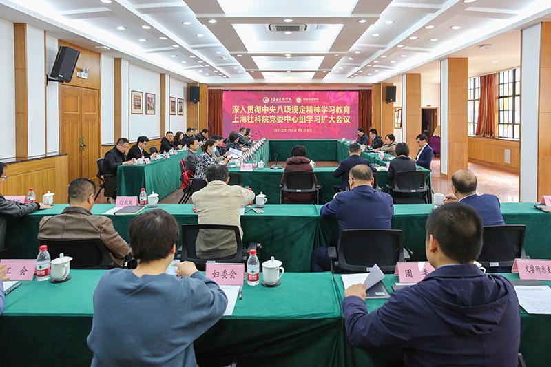 4月2日,上海社会科学院召开党委中心组学习扩大会议,深入学习中央八项规定精神。市委党校原副校长梅丽红作专题辅导报告。院党委副书记姚建龙主持会议,常务副院长干春晖出席会议。