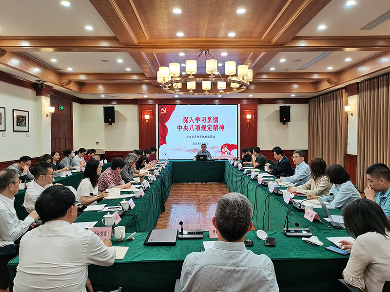5月16日下午,我院召开深入贯彻中央八项规定精神学习教育工作推进会暨2025年第二季度党建工作例会。院党委副书记姚建龙主持会议。市纪委监委驻市委宣传部纪检监察组副组长杨斌生出席会议并进行专题辅导。全院研究所党总支副书记、院直属党支部代表;机关党委副书记、研究生院党委书记、离退休党委副书记;研究所办公室主任及党政办公室、党委组织部、党委宣传部、党委统战部、机关纪委、工会、妇委会、团委负责人共计30余人参加会议。