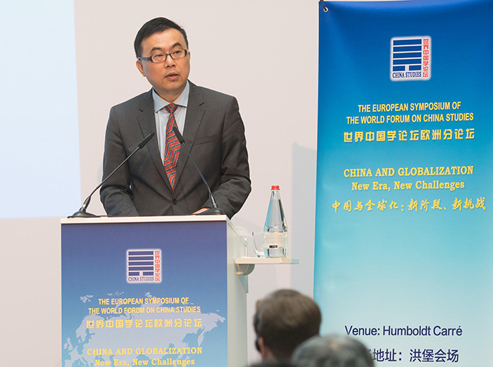 中国驻德使馆张军辉公使代表史明德大使出席了论坛的开幕式,他在致辞中说:“本次中国学论坛欧洲分论坛以G20汉堡峰会为契机,探讨全球化对中国和欧洲的影响与挑战,契合当前的国际政治经济形势,理论意义与现实意义兼具。”张军辉指出,应客观全面地看待全球化给人类带来的影响。全球化的受益者既包括美欧等发达国家,也包括抓住全球化机遇、对全球化采取开放态度的新兴经济体,一些国家甚至实现了跨越式发展。但就如一枚硬币的两面,全球化给我们带来利益与好处的同时,也带来了一些问题和挑战。全球化进程中,社会财富和全球化红利在不同国家和不同人群间的分配是不均衡的,甚至出现富国与穷国、富裕阶层与贫困阶层差距扩大的趋势,全球金融危机和经济增长低迷进一步加剧了财富分配差距扩大的问题。全球化进程中受益群体和受损群体之间的矛盾是导致当前逆全球化思潮涌动、民粹主义兴起的根本原因。为此,要赋予全球化新的内涵,使其朝着普惠包容公平的方向发展。尤其需要指出的是,逆全球化思潮的涌动并不意味着全球化的逆转和终结。全球化是生产力发展到一定阶段必然出现的现象,是不以人的主观意志为转移的客观规律,全球化趋势不可阻挡。作为一种趋势和过程,全球化不可能以一种永恒的加速度发展,很多因素都会影响全球化推进的速度,时快时慢才是全球化的常态。中国与欧洲同为全球经济治理改革的积极倡导者,在全球经济治理方面存在诸多共同立场。中欧双方应共同推动G20成为全球经济治理的主要平台,推进G20的制度化建设;共同致力于G20发展合作,推动普惠包容公平的新型全球化建设,让所有国家和群体共享全球化红利;共同推动国际金融机构改革,促进货币体系多元化,改变美元独大的不合理局面,努力构建有利于世界经济健康发展的国际货币制度;作为全球贸易体系的重要成员,中国和欧盟是全球自由贸易的积极倡导者,应在全球贸易规则制定中加强合作,反对任何形式的贸易保护主义,促进贸易投资的自由化和便利化。