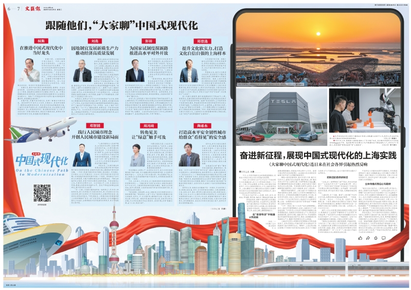 为深入学习贯彻习近平总书记关于中国式现代化的重要论述,深入学习贯彻落实党的二十大和二十届三中全会精神,在中共上海市委宣传部指导下,中共上海市委网信办、中共上海市委外宣办、上海社科院与文汇报社联合出品的《大家聊中国式现代化》系列短视频7集在全网推出后,连日来在社会各界引起热烈反响。