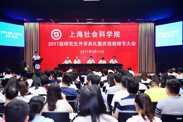 2017年9月12日下午,2017级研究生开学典礼暨庆祝教师节大会于上海社科国际创新基地隆重召开,上海社科院党委书记于信汇、副院长王振、谢京辉、张兆安出席会议。2017级208名新生与到会的教师代表共同庆祝第三十三届教师节的到来,会议由研究生院院长朱平芳主持。