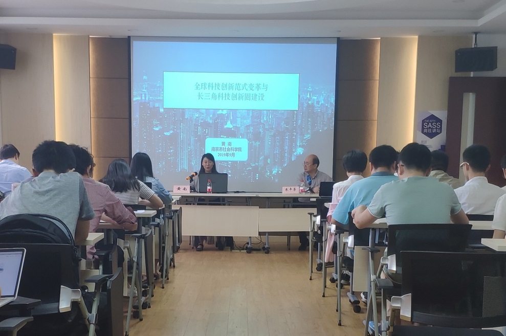 2019年9月24日上午,由上海社会科学院研究生院主办的第52期尚社讲坛“全国科技创新范式变革与长三角科技创新圈建设”在上海社科院分部415会议室举办。本期的主讲人是南京市社会科学院经济发展研究所所长、研究员黄南,她兼任江苏省扬子江创新型城市研究院执行副院长和南京市人大常委,被评为江苏省有突出贡献中青年专家、江苏省社科英才、江苏省“333高层次培养人才”中青年科技带头人、江苏省宣传文化系统“五个一批”人才、南京市宣传文化系统“五个一批”人才等。她曾多次获得江苏省哲学社会科学优秀成果二、三等奖、南京市哲学社会科学优秀成果一、二等奖,并主持、参与了多项国家、省、市社科基金项目。本次讲座由研究生院院长朱平芳主持。
