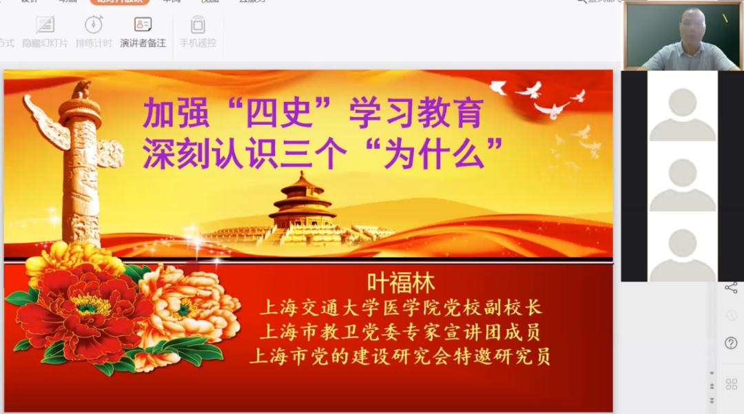 2020年7月6日上午,第二期“学四史,守初心”系列云讲座准时在zoom平台与大家见面。本次讲座邀请到了上海交通大学医学院党校副校长、上海市教卫党委专家宣讲团成员、上海市党的建设研究会特邀研究员叶福林教授。