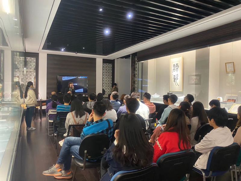 老师和同学们进入展馆后立刻被精美的陶瓷艺术品所吸引,争先上前观赏,热烈讨论。紧接着,老师与同学们落座会议室,由璟通艺术中心艺术总监熊景兰女士,为大家由浅入深地为介绍了陶瓷艺术的鉴赏、对比、艺术家风格及投资前景等等。参观结束后,老师与同学们在璟通艺术中心合影留念。