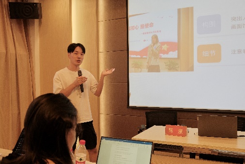 为提升学生骨干的工作技能,训练营开展了实务技能专题培训。16日下午的培训分为两部分。首先,刘浩东同学从共青团光辉的奋斗历史谈起,介绍了团的内涵、定位、运作模式和工作方式,阐明了团学工作的具体内容。第二部分由研会融媒体中心带来,分为摄影和推送两个主要模块。陈湟和张迅涤同学分别就活动摄影的基本流程和具体操作进行了讲解,赵晓慧和陈峻杰同学则分别为大家介绍了推送文案的写作和编辑排版相关的基本技能和注意事项。