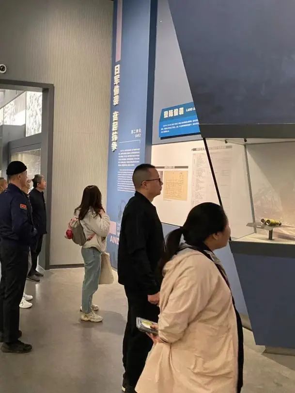 金山卫抗战遗址纪念园是抗日战争时期“八一三”淞沪会战中国军队的重要阵地。1937年,侵华日军在金山卫登陆,大肆烧杀抢掠,纪念园是以当年侵华日军登陆上海的地点为原址而修缮建立,为警醒世世代代不忘侵略者的罪行。活动中,讲解员带领大家相继参观了金山卫保卫战抗战群雕、长明灯、警世钟、抗日故事紫砂浮雕壁画、被害乡民纪念墙、古城墙遗址和日军碉堡、警世钟亭、金山卫城南门侵华日军登陆碑等抗战纪念景观,通过史料、实物、雕塑、建筑、音像等形式,全面、深刻回顾了当年中国军民顽强抵抗日军侵略的历史。