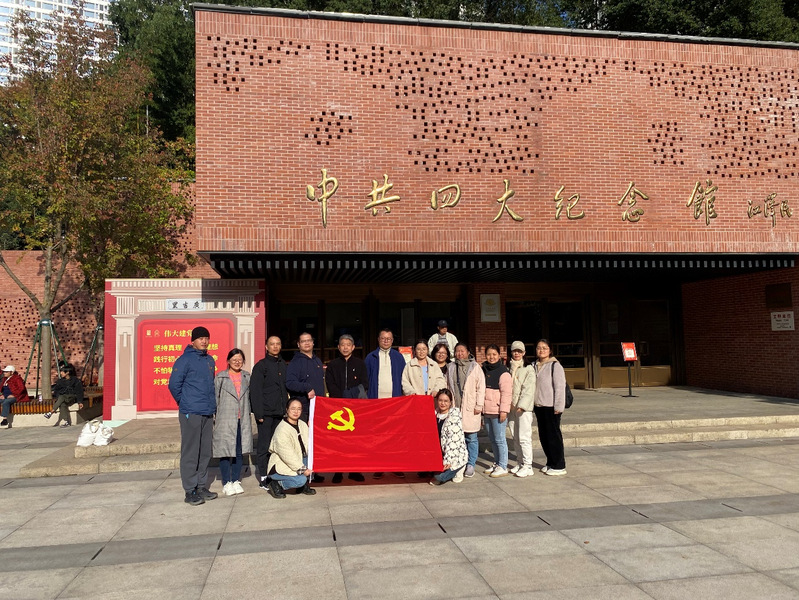 为深入学习贯彻习近平新时代中国特色社会主义思想,提升党员先锋模范作用和党支部战斗堡垒作用,在研究生院党委的统一部署下,研究生院教工党支部一行14人于11月17日下午集体前往中共四大纪念馆开展主题党日活动,追寻红色足迹,赓续红色血脉。
