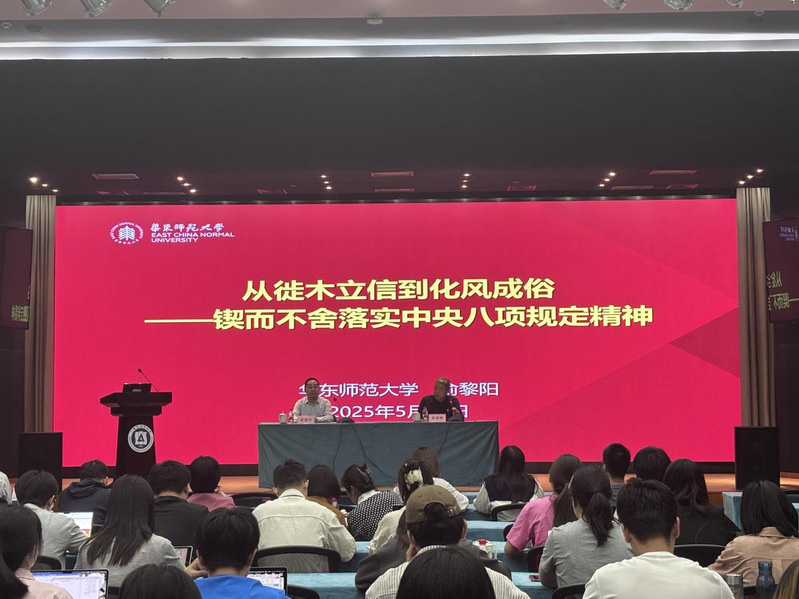 为深入学习贯彻习近平总书记关于加强党的作风建设的重要论述和中央八项规定及其实施细则精神,5月13日下午,研究生院与文学研究所在中山西路院区多功能厅开展有关“中央八项规定”精神的联组学习,邀请华东师范大学纪委副书记俞黎阳作《从徙木立信到化风成俗——锲而不舍落实中央八项规定精神》的专题辅导报告。研究生院党委书记轩传树主持,文学研究所党总支书记、副所长郑崇选作总结讲话。两家单位的职工党员、九十余名学生党员代表参加学习。