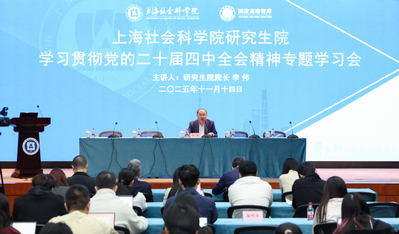 11月14日,研究生院学习贯彻党的二十届四中全会精神暨2025年上海社会科学院研究生国情调研成果交流会在中山西路院区2号楼5楼多功能厅举行。上海社会科学院研究生院院长李伟、党委书记轩传树、党委副书记侯伟东、副院长邸俊鹏及上海社会科学院院史办公室主任刘社建出席本次交流会。会议由研究生院院长李伟主持,百余名硕士生、博士生参加。
