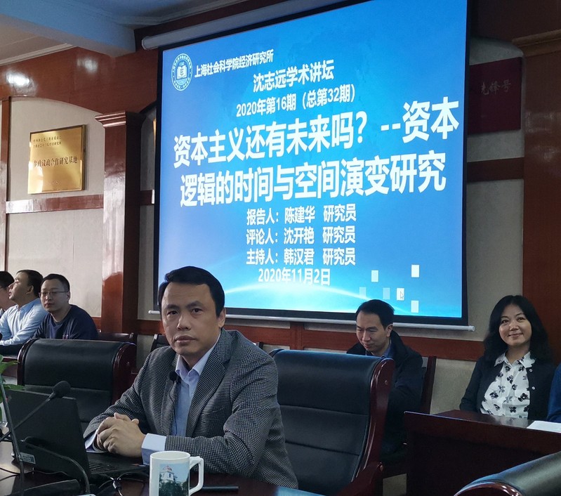 2020年11月2日上午,上海社会科学院经济研究所2020年第16期(总第32期)“沈志远学术讲坛”在503会议室举行,陈建华研究员作了题为“资本主义还有未来吗?----资本逻辑的时间与空间演化研究”学术报告,会议由韩汉君副所长主持,沈开艳所长进行了点评。