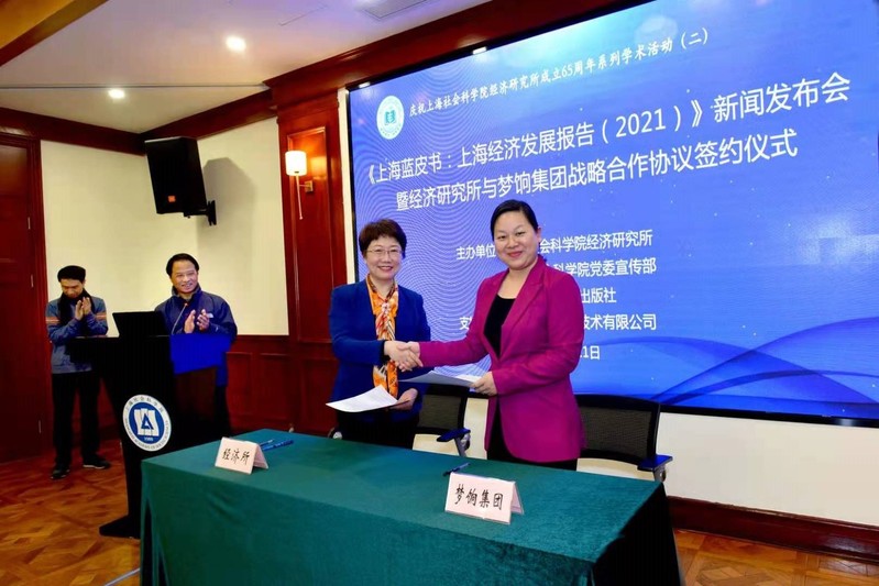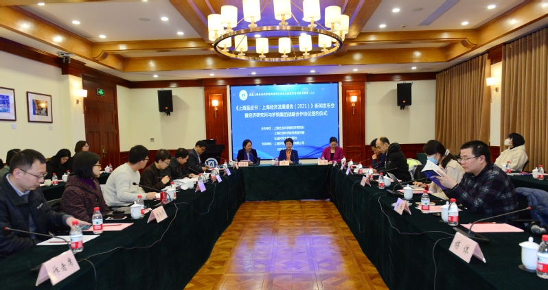 2021年3月11日,上海社会科学院经济研究所举办《上海蓝皮书:上海经济发展报告(2021)》新闻发布会。本次发布会由上海社会科学院经济研究所、上海社会科学院党委宣传部、社会科学文献出版社主办,上海梦饷信息技术有限公司协办。上海社会科学院党委宣传部部长汤蕴懿研究员主持发布会,社会科学文献出版社社长王利民研究员(视频致辞)、梦饷集团CEO冷静女士首先分别致辞,对本书的理论价值和应用价值进行了充分肯定。
