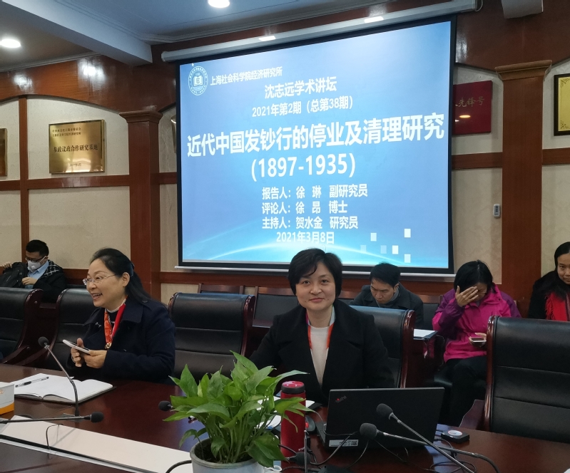 2021年3月8日,2021年度第2期“沈志远学术讲坛”在经济研究所503会议室举行。经济研究所副研究员徐琳博士就“近代中国发钞行的停业与清理研究”作了学术报告,本次报告由经济史与经济思想史研究室主任贺水金研究员主持,徐昂博士担任评论人。