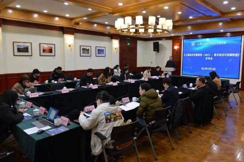 2023年2月27日下午,上海社会科学院经济研究所在院总部101会议室召开《上海经济发展报告(2023):数字经济与双碳转型》发布会。会议由经济所李培鑫主持。