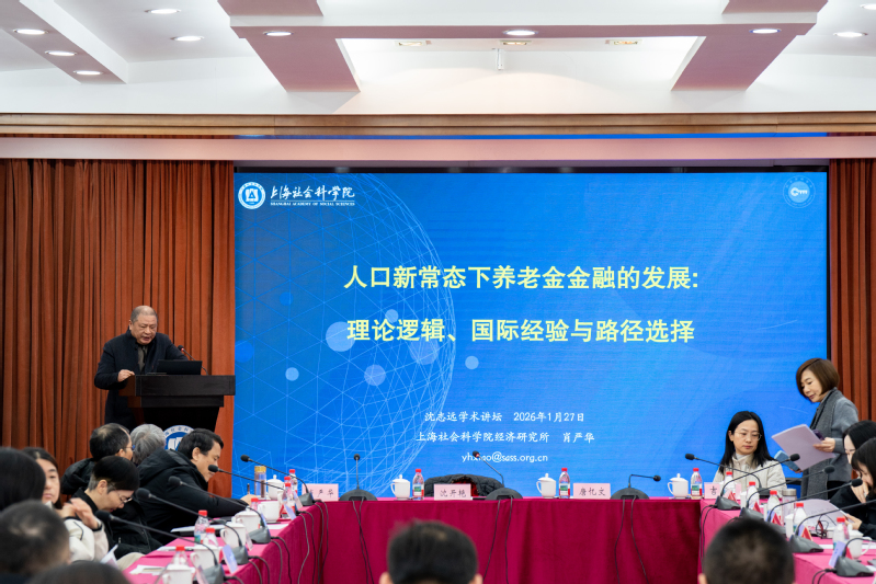 2026年1月27日上午,2026年第3期(总第117期)“沈志远学术讲坛”在社科院小礼堂举行。本所肖严华研究员做了题为“人口新常态下我国养老金金融的发展”的学术报告。本次报告会由经济所所长沈开艳研究员主持。