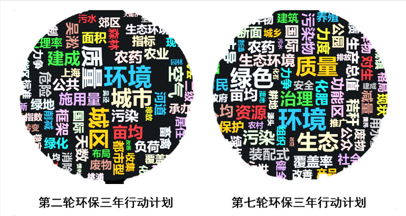 图1 上海第二轮和第七轮环保三年行动计划词频分析