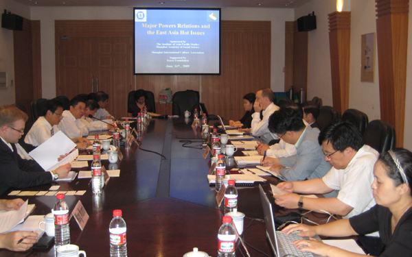 2009年6月15日,以“大国关系与东亚热点问题”为主题的国际研讨会在我所召开,本次会议由上海社会科学院亚洲太平洋研究所和上海市对外文化交流协会联合主办,韩国国际交流财团协办。上海市对外文化交流协会秘书长丁宏根、亚洲太平洋研究所副所长刘鸣主持会议。会议邀请了来自美国凯托研究所副总裁卡彭特、美国国防部军队转型办公室前战略助理巴尼特、美国海军战争学院中国海事研究所艾立信、韩国外交安保研究院金兴奎、日本PHP研究所前田宏子以及中国北京社科院美国所陶文钊、魏红霞,中国国际问题研究所的刘学成,上海复旦大学美国研究中心潘锐、汪伟民,上海同济大学国际关系学院夏立平等专家学者,围绕近期东亚地区的安全形势、美国奥巴马政府的对华政策、中日关系、朝核问题以及东亚区域一体化等议题进行了讨论。