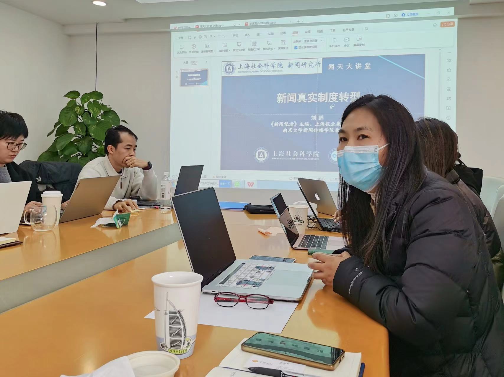 12月26日上午,上海社会科学院新闻研究所举办“闻天大讲堂”系列讲座。此次活动邀请了《新闻记者》主编、上海报业集团高级编辑、南京大学新闻传播学院兼职教授刘鹏老师作为演讲嘉宾。讲座题目为《新闻真实制度转型》,讲座由王蔚老师主持,副所长张雪魁老师以及近二十位科研人员听取了演讲。