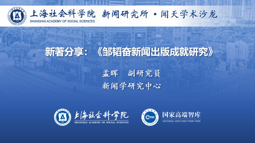 孟晖首先分享了自己多年来研究邹韬奋生平思想及其文化成就的历程,以及其新著《邹韬奋新闻出版成就研究》的主要内容和价值。邹韬奋是著名的左翼新闻工作者和文化人的代表,也是与上海有着深厚渊源的文化名人。他从一位民主主义者转变为共产主义者的人生道路,在当时的进步知识分子中具有典型性,其新闻出版实践则是当时先进文化的一部分。对邹韬奋生平思想和新闻出版成就进行系统研究,能为研究同类型的人物提供参考,并为当今的新闻出版工作者提供经验借鉴。该书力图结合中国近现代新闻出版史研究,中国现代文学史研究以及传记研究,拓宽了相关研究领域。