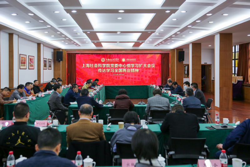 3月21日,上海社会科学院召开党委中心组学习扩大会议,传达学习全国两会精神。全国人大代表、院党委书记权衡,全国政协委员、院政治与公共管理研究所所长刘杰作专题报告。权衡主持会议并作总结讲话。副院长、应用经济研究所所长干春晖作交流发言。院长王德忠、院党委副书记王玉梅、副院长王振参加会议。