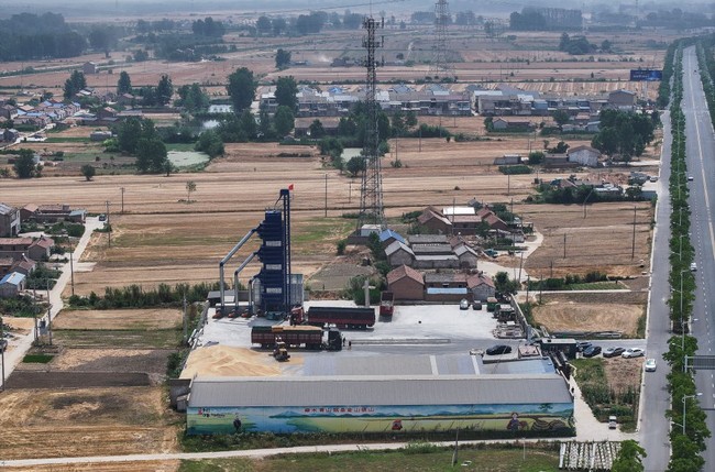 2024年6月12日拍摄的宿迁市洋河新区罗庄村粮食烘干点(无人机照片)。该粮食烘干点由村党支部筹建,为本地及周边乡镇农户提供服务的同时,也增加了村集体经济收入。新华社记者 季春鹏 摄