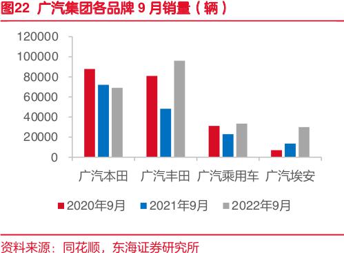 销量来看,广汽产销加快恢复。9月份,全集团生产汽车22.81万辆、销售23.72万辆,同比分别增长41.5%和44.3%。1-9月累计生产汽车183.26万辆、累计销售182.50万辆,同比分别增长26.9%和22.2%。