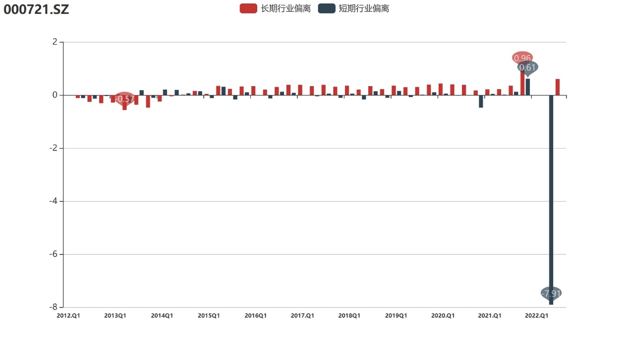行业偏离:截至2022年3季度,西安饮食的行业偏离值为0.6,公司3季度溢价协同表现好于行业平均水平。忽略短期波动的异常值,可以看到公司行业偏离水平多数时期站于行业上方,近几个季度甚至进一步上行,表明公司市值增长未随内在价值出现崩盘。