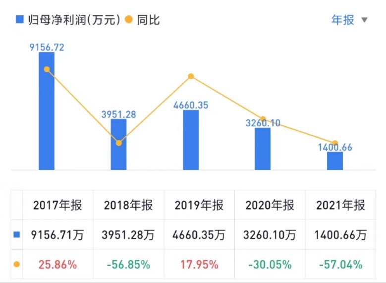 2015年上市之初,金发拉比生产经营一度形成了良好增势,2015年到2017年,营收从3.64亿元增至4.30亿元,净利也从0.69亿元增至0.92亿元。好景不长,这一势头未能延续下去,2018年,金发拉比加快门店开设、优化销售渠道,但销售额未达预期,净利润骤降至0.39亿元。此后公司业绩便持续承压,出生率持续下滑、母婴市场竞争加剧,叠加2020年以来受疫情持续扰动影响,盈利能力一落千丈。