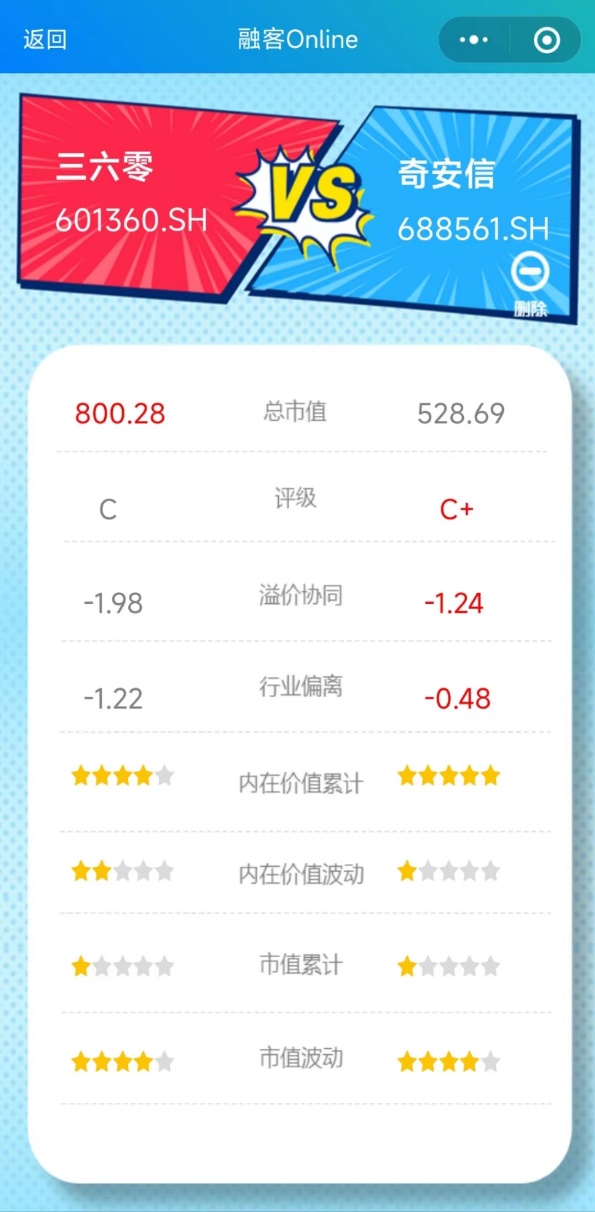 截至去年3季度,奇安信的评级均为C+,健康水平与三六零相近,双双表现不佳。自2020年上市以来,奇安信的溢价协同表现持续处于低位,长期溢价协同水平也已偏离了合理区间,背后市值和内在价值同样双双下滑。奇安信的盈利能力始终为投资者诟病,也难以得到资本市场认可。对两家公司而言,还需在互联网发展的新阶段继续寻找机会,赢得市场信赖。特别是三六零,市场期待其找回“失落的十年”,重振互联网巨头雄风。